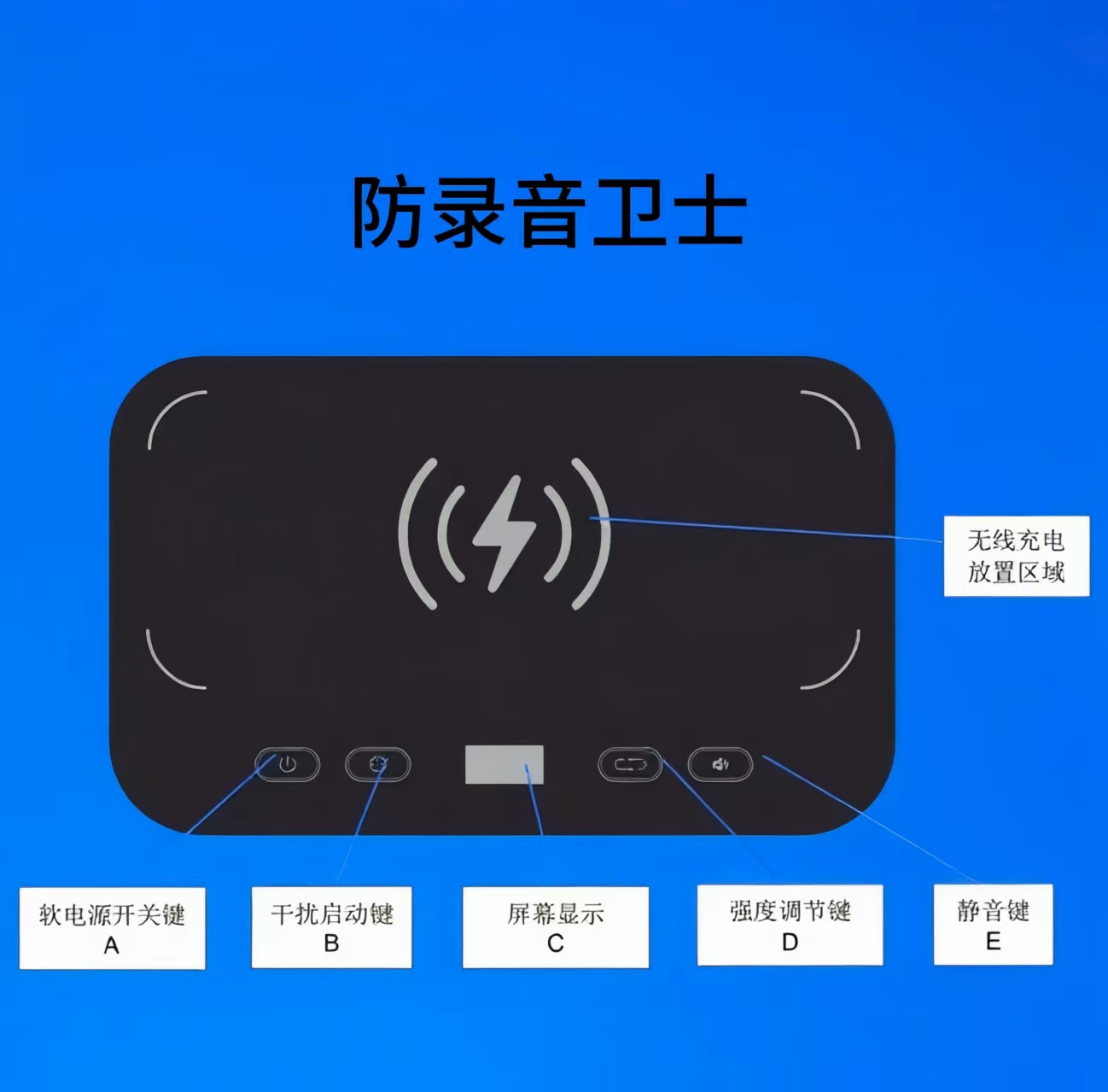 产品简介:超声波智能防录音屏蔽器用于干扰窃听器、录音机、手机、录音笔等各类模拟和数字录音设备,以保护涉密会议、机密谈话、商务谈判等。最大干扰距离为10米,取决于不同录音设备的降噪水平能力,针对于市面上的主流手机、录音笔,最佳有效干扰距离一般为1-6米。设备内置大容量锂电池,可以持续工作6-10h,可以满足日常使用需求。