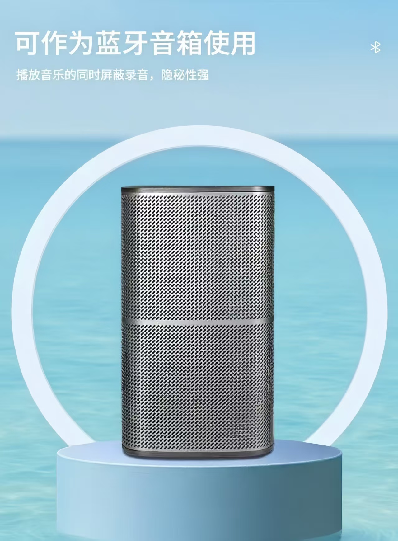 产品简介:一款蓝牙音箱式录音屏蔽仪,集录音屏蔽与音频播放功能于一体,伪装性强。搭载自主研发的超声波混频器,采用超声波带噪声学干扰技术,有效屏蔽各种手机、录音笔等便携录音设备的同时,人耳无察觉,且干扰音频无法被还原。多种控制方式,除设备自带控制开关,也可通过小程序或附带遥控器远程开启设备,