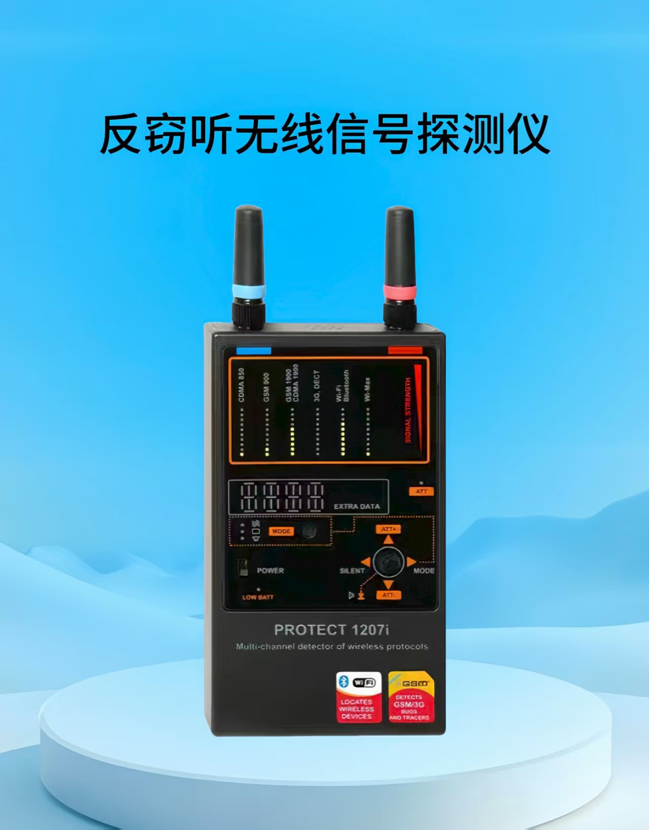 Protect 1207i防偷拍设备是乌克兰DisGican Labs公司新研制的一款非常可靠的反窃听反偷拍检测设备,它同时也是多通道无线数据传输协议检测器。它是工程师或反监测专家用来跟踪各种无线电数字传输设备的可靠工具,例如:GSM、蓝牙等新型视听设备等。普通RF检测器(反窃听检测器)可以检测一个很宽的频率范围内的信号,通常是3至6GHz。但是无法检测诸如蓝牙、Wi-Fi或无线Wi-Max等频率极低或非连续的信号,也不能检测到更高频率的信号,如:GSM1800,因为普通设备在更高的频率范围内灵敏度会下降。要可靠地检测无线传输协议,只有使用这种预选芯片(表面声波滤波器),它能够减弱其它干扰信号,保留所需要的信号。POTECT 1207i实现了这种理念,它具有6个不同的频率范围通道,与其它普通RF检测设备相比,能同时探测6种不同的无线传输协议。