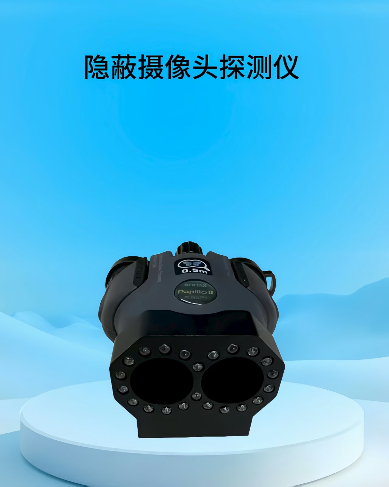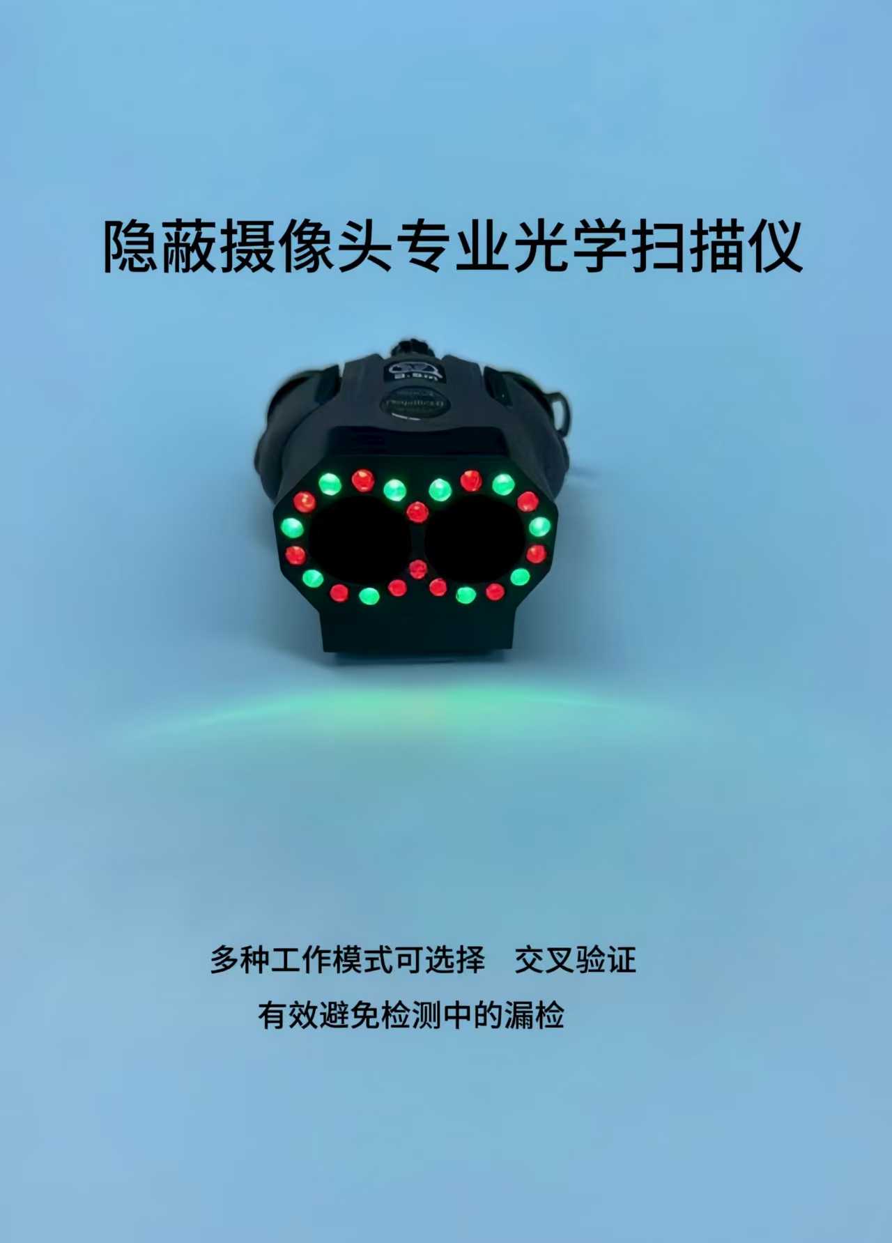 产品简介:该仪器是一款专业检测隐藏摄像头的探测仪,可在数十米之内探测到隐蔽针孔摄像头,并进行精确定位,无论是在白天还是黑夜,摄像机是处于开/关状态或是否有视频信号传输,本设备都可检测到。设备基于偷拍镜头形成高亮反光点回馈来检测摄像机,对各种伪装镜头都能快速准确的找到,纯物理方式探测,使用设备进行扫描时,如果通过该设备看到一个红点或者绿点出现在镜头中,那么它就是一个隐藏的摄像机