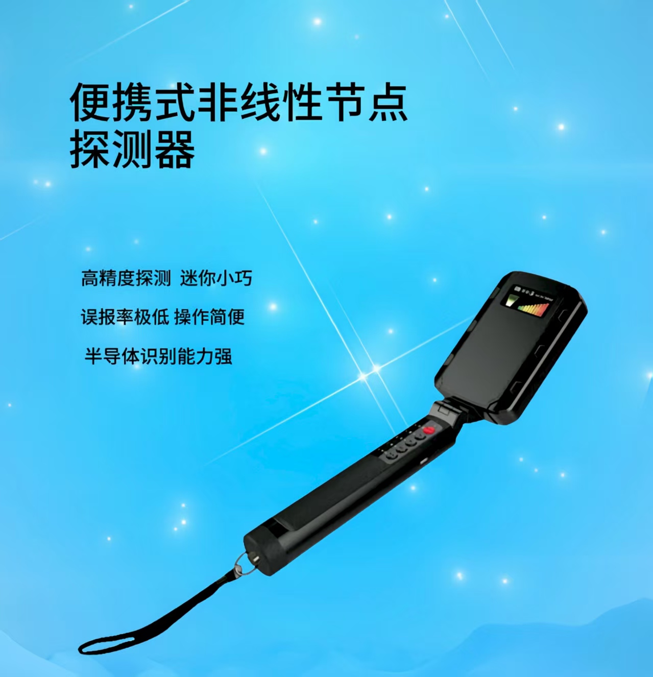 可疑的电子产品。本产品是国产化自主研发设计的一款便携型的非线性结点探测器,可以探测到隐藏在墙体、地板、天花板、灯具、家具或容器中的任何电子设备,无论这些