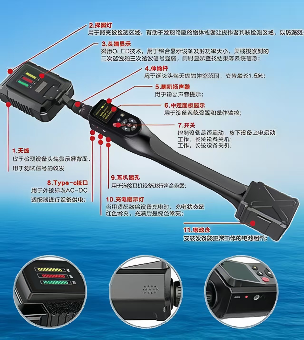定位精度高,产品采用2400MHz射频探测技术,具有高精度定位特点。